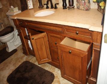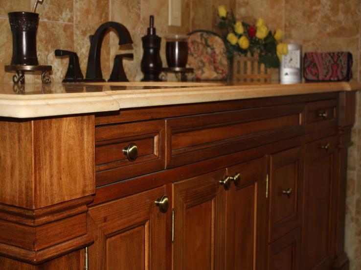 Master bath vanity in maple stained and glazed |