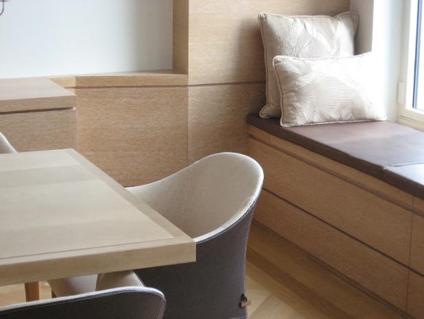 Window seat and buffet and adjoining wall panel |